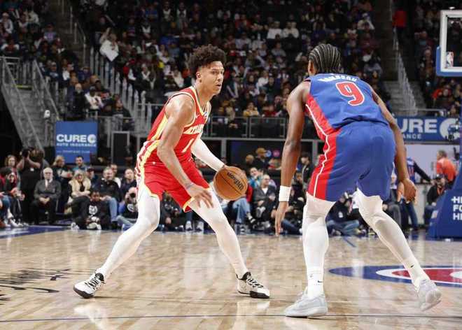 活塞过去两个主场连续战胜开拓者与雄鹿收获2连胜,老鹰上一场客场131-116战胜奇才,本赛季前两次交锋活塞均取胜。本场活塞缺少琼斯,老鹰缺少特雷-杨、波尔津吉斯、托平。首节前3分半钟活塞11-8领先,邓罗外线开火率队扩大15-10领先优势,老鹰内外开花追到仅差1分。杜伦暴扣率队维持26-22领先优势,老鹰继续紧咬比分拉锯战缠斗,首节结束活塞34-33领先老鹰。老鹰22中13接近6成准星,其中三分10中5,沃克3记三分11分,活塞27中14,其中三分6中3,坎宁安3中3得到7分5助攻。